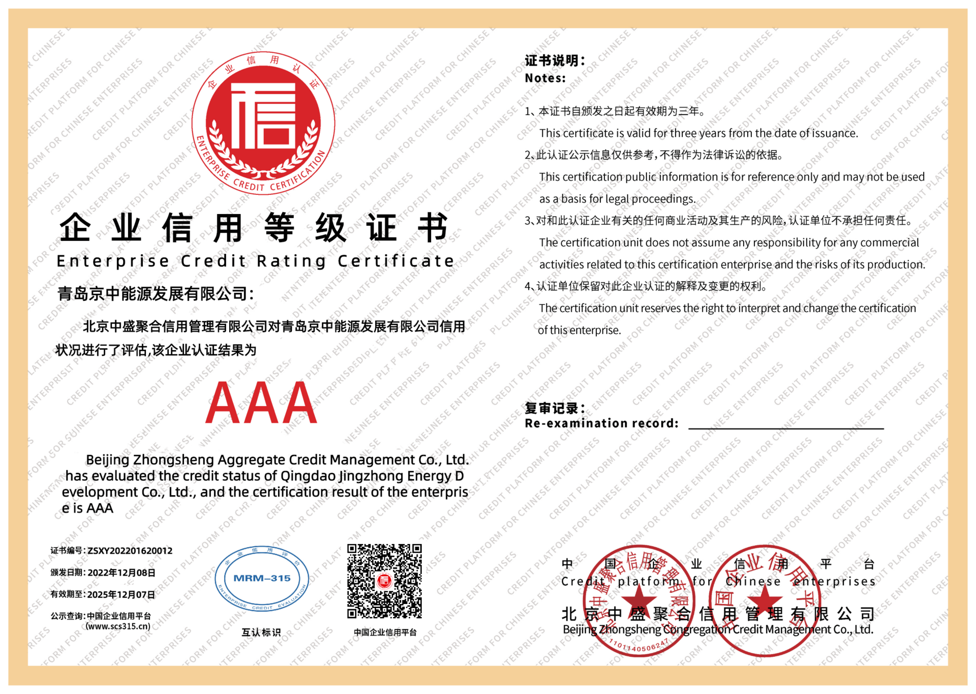 质量证书